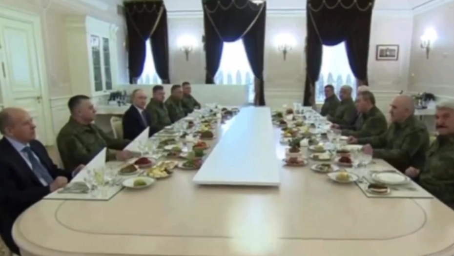 Na snimku se vidi ruski predsednik kako sedi među generalima u formalnoj atmosferi, dok mu konobari donose glavni obrok. Međutim, dok je Putinov tanjir već bio pun, tanjiri ostalih gostiju ostali su prazni, prekriveni samo salvetama. Na stolu, takođe, nije bilo nikakvog pića – čak ni vode – već su flaše bile odložene sa strane.
