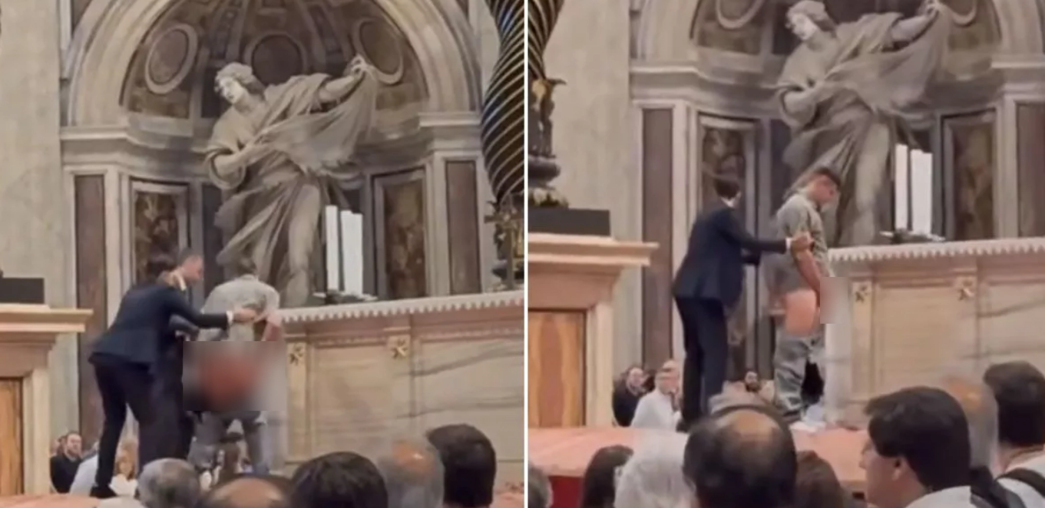 Mladić je izazvao šok širom sveta urinirajući po oltaru u Rimu. Jurišajući uz stepenice u petak uveče tokom mise, nepoznati čovek je urinirao po oltaru pre nego što su ga policajci u civilu odvukli, prenosi Dejli star.