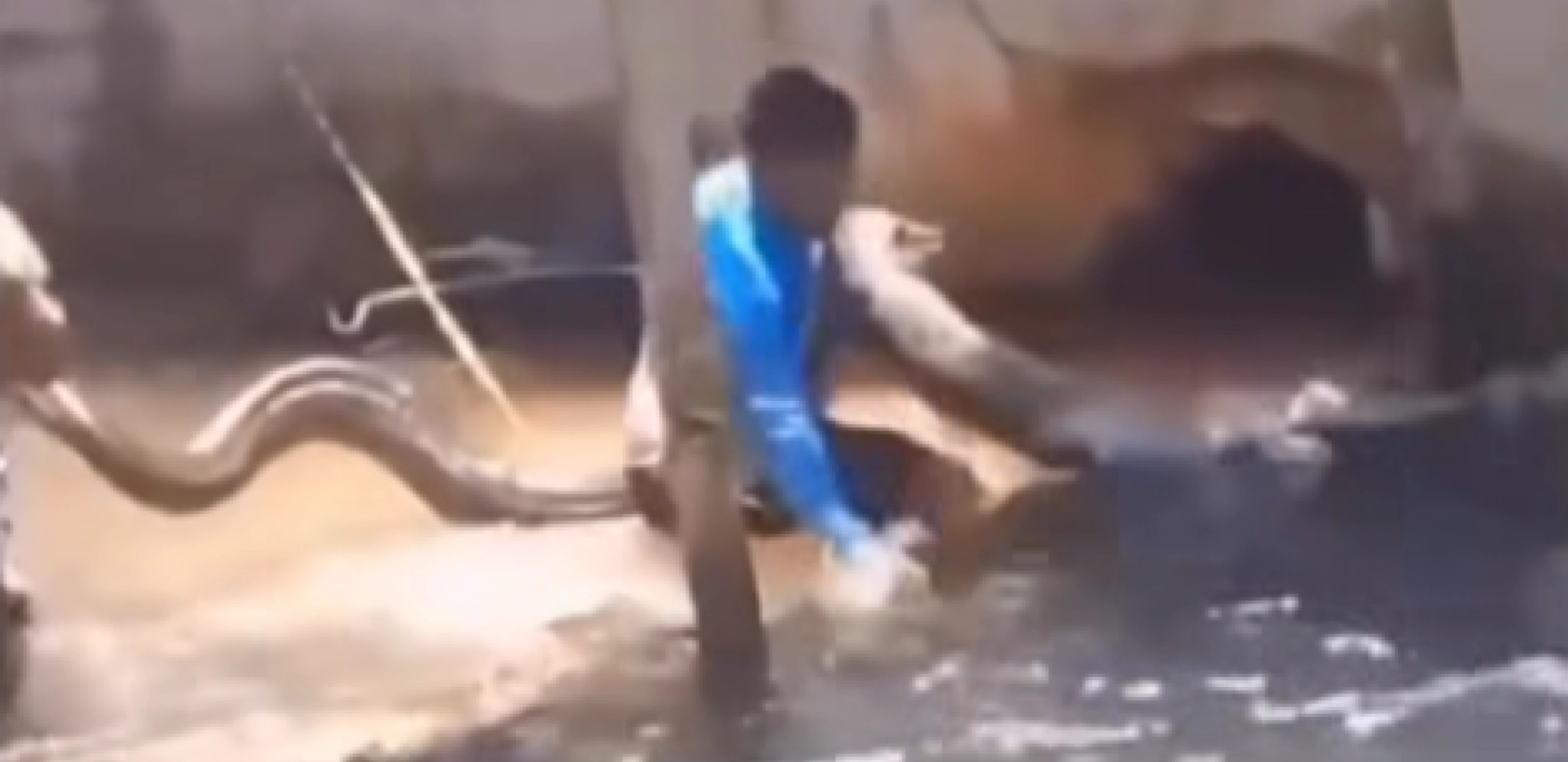 Pošto se zmija krila na nepristupačnom mestu, vatrogasci su morali da upotrebe vazdušni čekić kako bi razbili beton i proširili otvor da dopru do anakonde.
