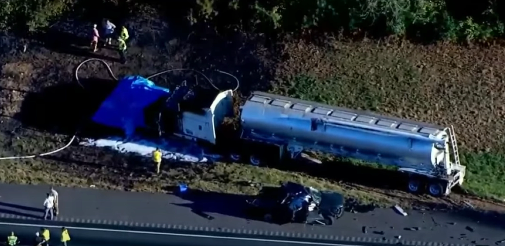 Nesreća se dogodila kada je šleper udario u "Dodž" kombi, koji je potom naleteo na druga vozila.