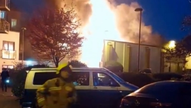 Snimci sa mesta događaja prikazuju ogroman oblak dima i plamen kako prodiru kroz zgradu dok se meštani bore okolo.