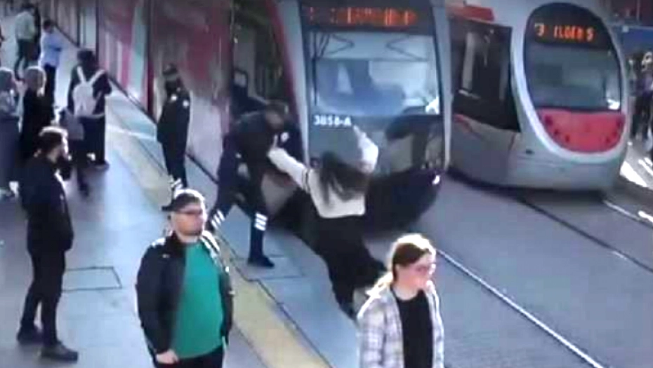 Za dlaku je izbegnuta tragedija u Turskoj, kada je devojka spasena trenutak pred nadolazeći tramvaj.