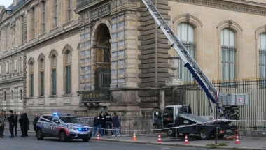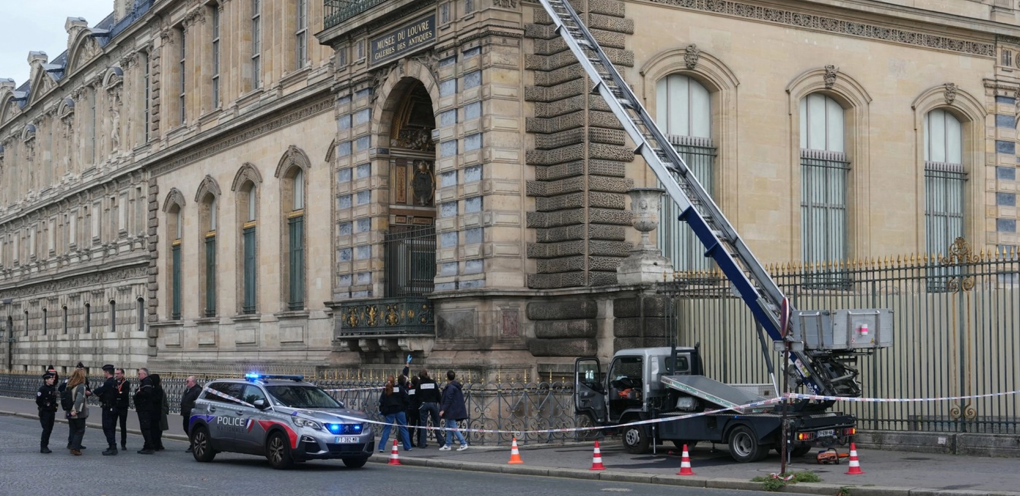 Četiri maskirana razbojnika u fluorescentnim radnim prslucima upotrebila su kamion s ravnom platformom i mehaničkom dizalicom kako bi provalili u "Galeriju Apolon" u Luvru u nedelju ujutro.