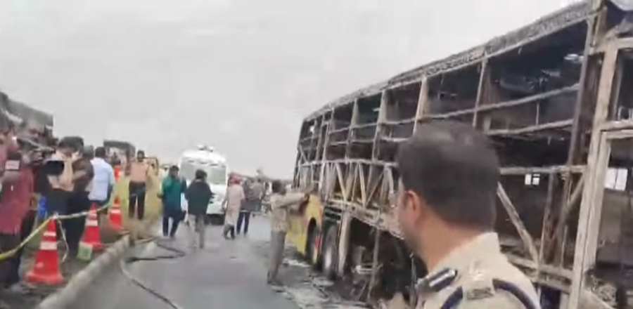 Prema saopštenju policije, autobus koji je saobraćao od Hajderabada do Bengalurua sa 42 putnika se odmah nakon sudara zapalio.
