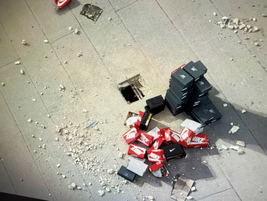 Prema šerifovoj kancelariji, lopovi su robu spakovali, označili etiketama, bacili sa krova i utovarili u vozilo za bekstvo, pri čemu je deo ukradene robe brzo ostavljen.