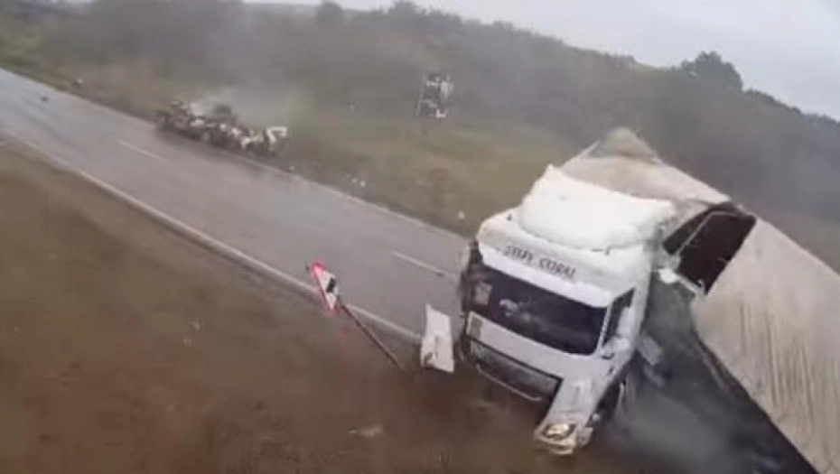POJAVIO SE UZNEMIRUJUĆI SNIMAK JEZIVE NESREĆE: Teretni kamion smrvio automobil, poginule dve osobe (VIDEO, FOTO)