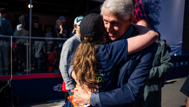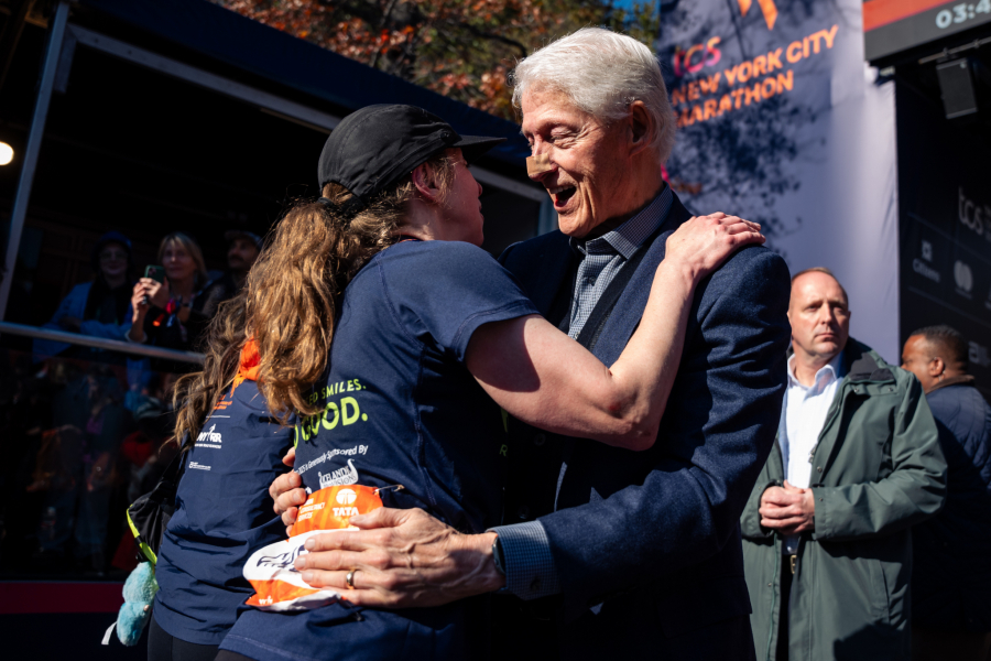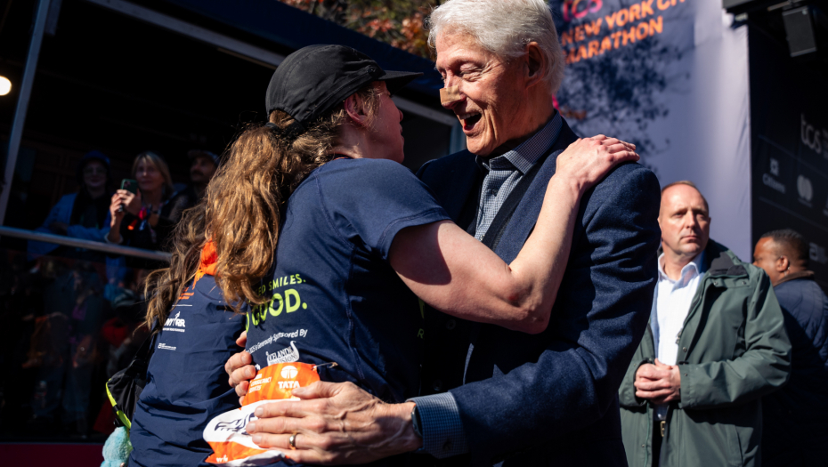 Na fotografijama se jasno vidi flaster na nosu 79-godišnjeg Klintona dok grli svoju ćerku, Čelsi, 45, koja je učestvovala u trci. Klintonu se pridružila i njegova supruga, Hilari, 78.