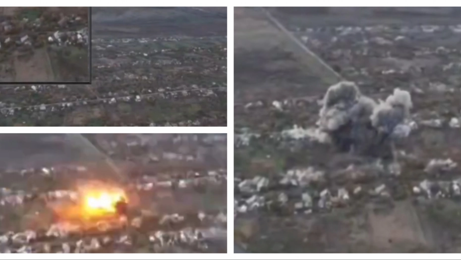 Kako se vidi na snimku, ruski FAB-1500 snažno pada na zemlju i „odbija se uvis“, piše grčki portal Pronews.