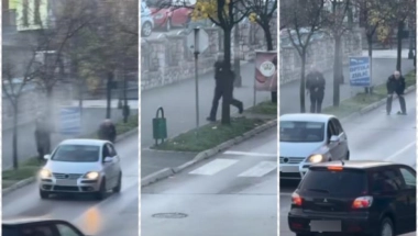 Na snimku se može videti kako policija BiH puca na pljačkaše, koji beže.