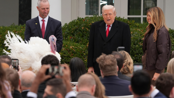 Ćurke čija su imena izabrana putem onlajn glasanja, pomilovali su Tramp i prva dama SAD Melanija Tramp na svečanoj ceremoniji u Ružičnjaku Bele kuće, preneo je ABC njuz.