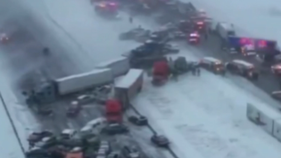Snežne padavine i snažan vetar stvorili su nanose koji su drastično smanjili vidljivost, što je dovelo do lančanih sudara u više traka.