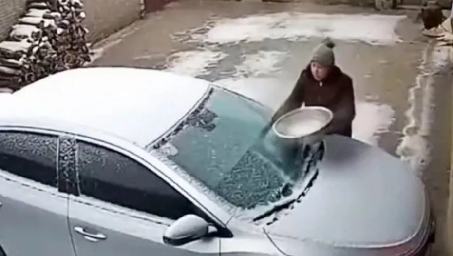 Bio lažan ili ne, snimak je poučan za vozače koji se u zimskom periodu susreću sa zaleđenim staklima na automobilima.