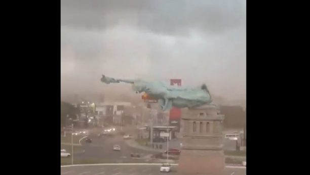 SRUŠIO SE KIP SLOBODE: Vetar oborio džinovsku repliku (VIDEO)