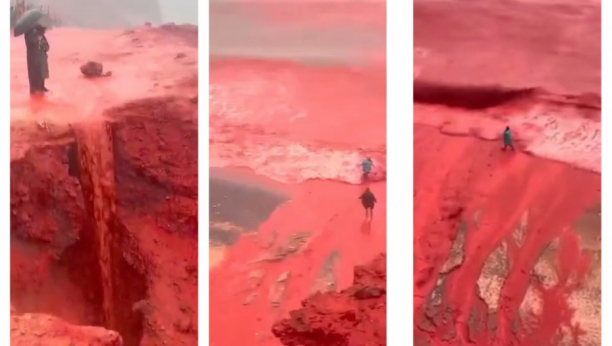 Snimci koji su u utorak postali viralni, a zabeleženi su na iranskom ostrvu Hormuz, prikazuju kako obilne padavine duž obale stvaraju duboko crvenu vodu koja se sliva niz stene, preliva preko litica i uliva u more, menjajući i boju samog okeana.
