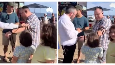 Na snimku, koji je na Instagramu objavio Matildin otac Majkl, vidi se Matilda kako stoji pored rabina Šlangera dok on obavlja ritual tefilina nad Majklom.