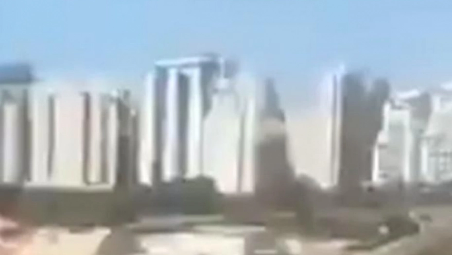 Na snimku se vidi kako raketa sa treskom pogađa zgradu. Snažna eksplozija je potresla ceo okrug.