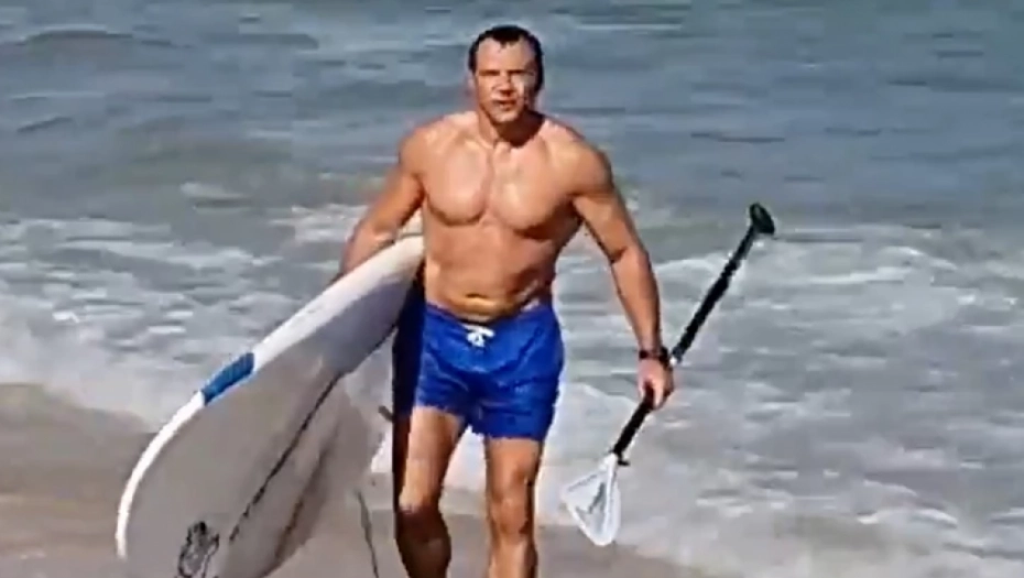 Na snimku koji je počeo da se širi društvenim mrežama vidi se kako ministar izlazi iz vode dok u rukama drži dasku za surfovanje, a mnoge je ovaj video podsetio na čuvene scene iz "Čuvara plaže".