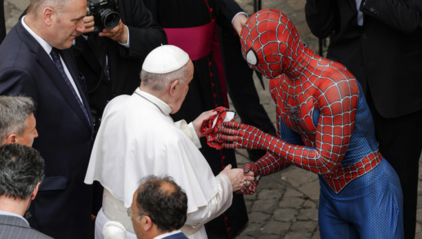 Njegovo prisustvo u dvorištu Apostolske palate čak je rizikovalo da "ugrozi popularnost pape" obučenog u belo. Spajdermen, omiljeni lik dece, slikao se sa prisutnima.