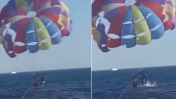Zastrašujuć prizor snimljen je u Akabi na Crvenom moru dok su dva muškarca lebdela iznad vode padobranom prikačeni za gliser. U jednom trenutku su verovatno zastali da odmore i dok su se nalazili na površini vode, iz dubina je ISKOČILA ajkula i zgrabila jednog muškarca za nogu!