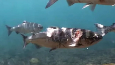 Video koji je u utorak objavila neprofitna organizacija Kolumbija Riverkiper prikazuje grupu lososa kako pliva u rečnoj pritoci prekrivenoj crvenim lezijama i bijelim gljivicama kao rezultat stresa i izloženosti ekstremnim temperaturama, piše Gardijan.
