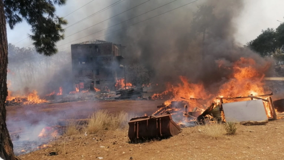 Televizijski snimci u Turskoj prenose slike spaljenih stambenih zgrada i ljude kako beže po poljima dok su se vatrogasci sa helikopterima borili protiv požara.