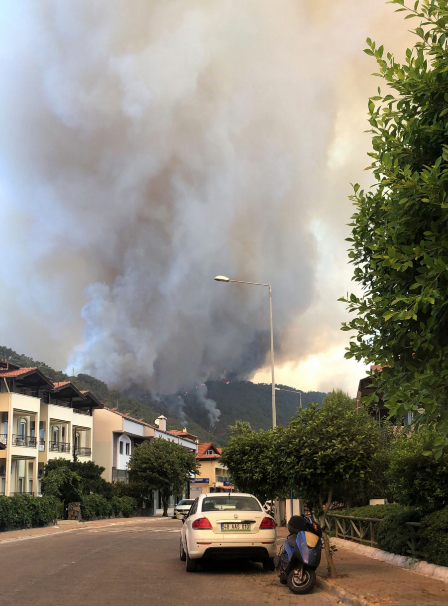 Helikopteri su neprestano nadletali Marmaris i izručivali na hiljade litara vode na drveće i nisko rastinje koje gore. Vatrogasci su posebno bili aktivni kod područja sa hotelima, kako ne bi došlo do tragedije. Ipak, pojedini turisti su tražili da budu evakuisani, pa su oni čamcima prebačeni u drugi deo Marmarisa, dalje od požara.