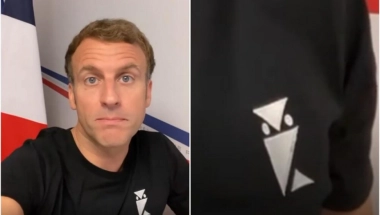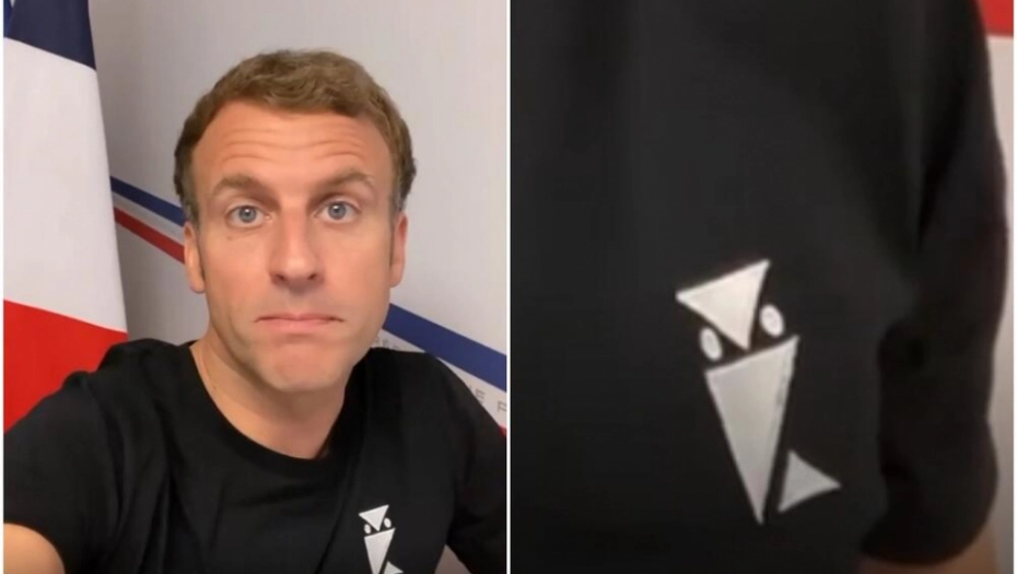Francuski predsednik je zamenio svoje standardno sivo odelo, belu košulju i kravatu nešto modernijim izborom - crnom majicom kratkih rukava. Ispostavilo se da je njegov modni izbor izazvao poplavu spekulacija i teorija zavere koje su logou sove dali mnogo više na značaju nego Makronovoj poruci.