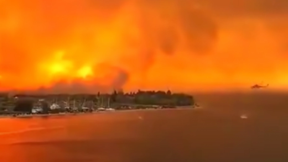 Gust dim prekriva čitavu regiju, dok jugoistočni vetar raspiruje vatru prema severnome delu drugog po veličini grčkog ostrva, a velika većina građana je evakuisana.