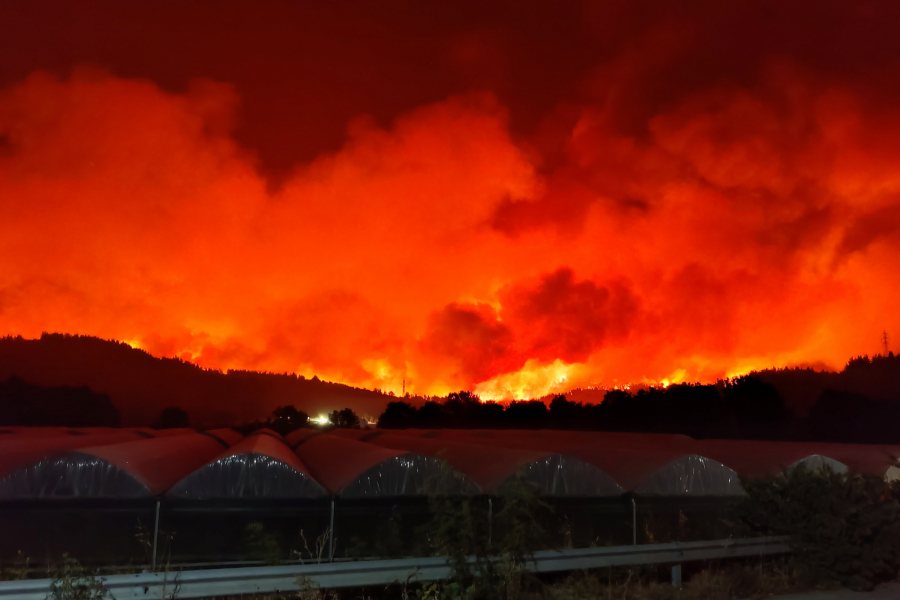 Prema izveštajima grčke državne televizije vatrogasne jedinice, vojska i dobrovoljci ne uspevaju da se izbore s požarom koji besni u gradu Pefki.