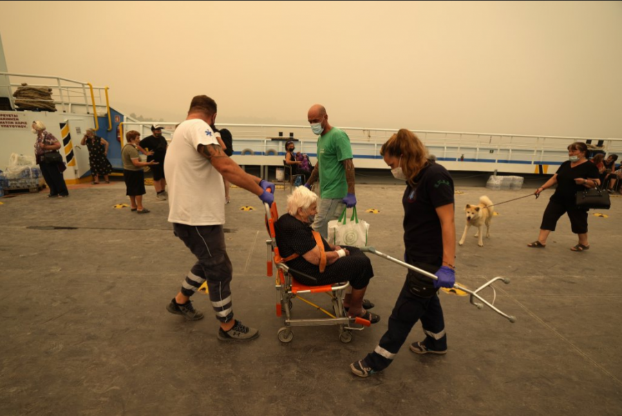 Gust dim prekriva čitavu regiju, dok jugoistočni vetar raspiruje vatru prema severnome delu drugog po veličini grčkog ostrva, a velika većina građana je evakuisana.