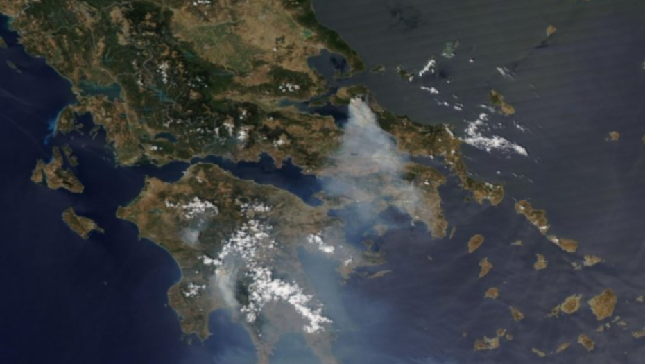 Satelitski snimci požara u Grčkoj prikazuju razmeru katastrofalne vatrene stihije koja uhištava sve pred sobom.