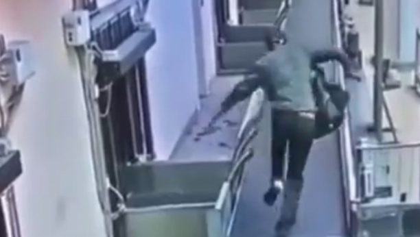 Na snimku sigurnosne kamere vidi se kako mladić puzeći prolazi kroz otvor predviđen za prtljag, te izlazi na pokretnu traku.