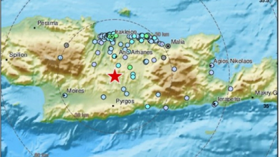 Epicentar zemljotresa bio je na 163 kilometra od Irakliona, na dubini od 68 kilometara.