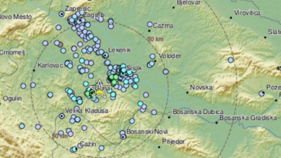 Prvi put se kod Gline zatreslo magnitudom 3.1 po Rihteru u 23:09 sati, dok je 12 minuta kasnije magnituda potresa iznosila 3.5, javlja EMSC.