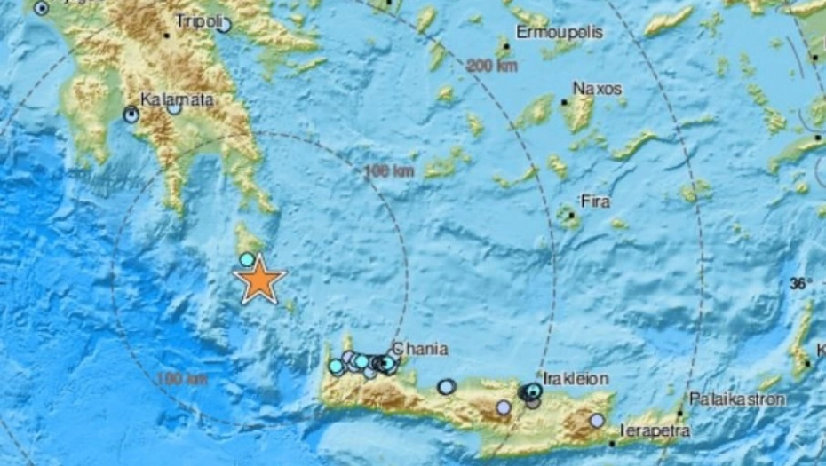 Epicentar potresa registrovan je na dubini od skoro 58 kilometara u 05.16 u moru između poluostrva Peloponez i ostrva Krit, izvestio je grčki Institut za geodinamiku, a grčki mediji javili su da se zemljotres osetio od Atine do Krita, prenosi portal Katimerini.