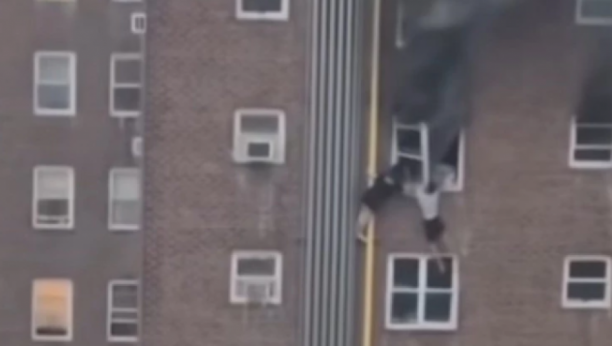 JEZIV SNIMAK BORBE ZA ŽIVOT Tinejdžeri u grotlu zapaljene zgrade na Menhetnu puze niz oluk (VIDEO)