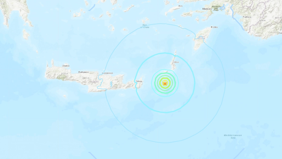 Epicentar zemljotresa koji se dogodio u 20.59 po lokalnom vremenu bio je 174 kilometra istočno od Irakliona na dubini od 10 kilometara, navodi se na sajtu Evropsko-mediteranskog seizmološkog centra.