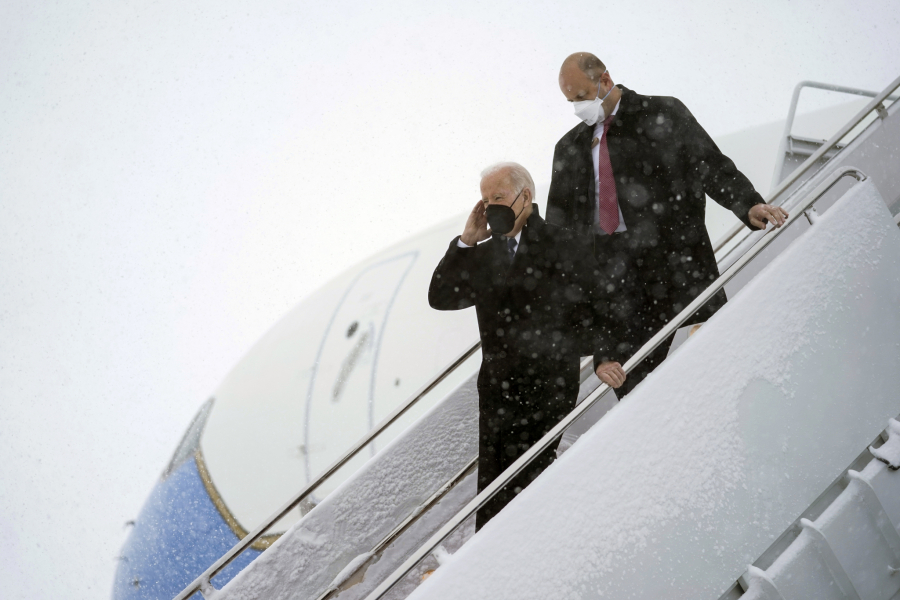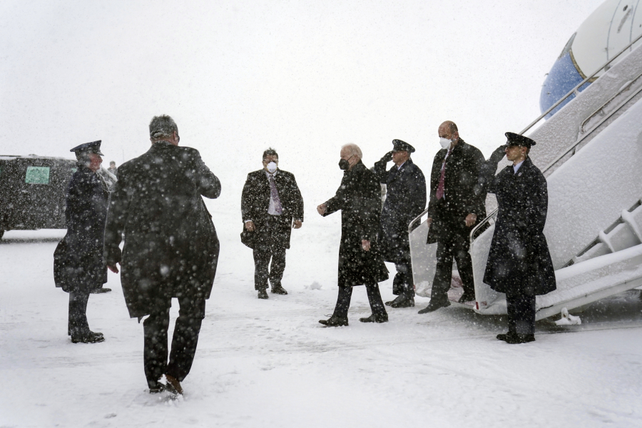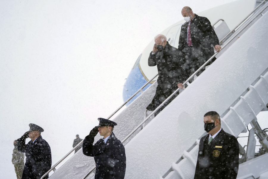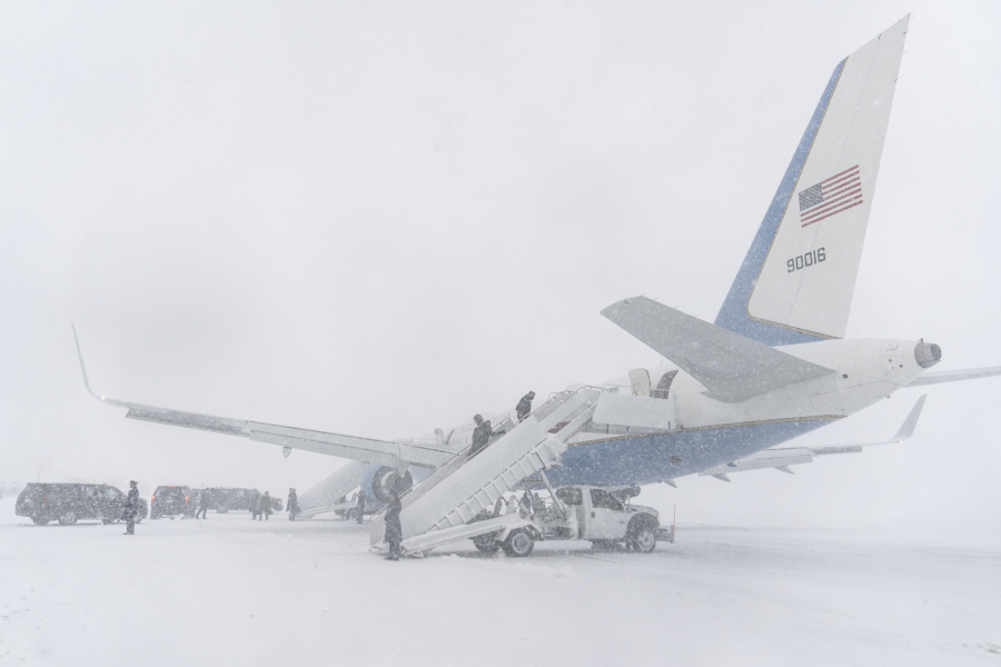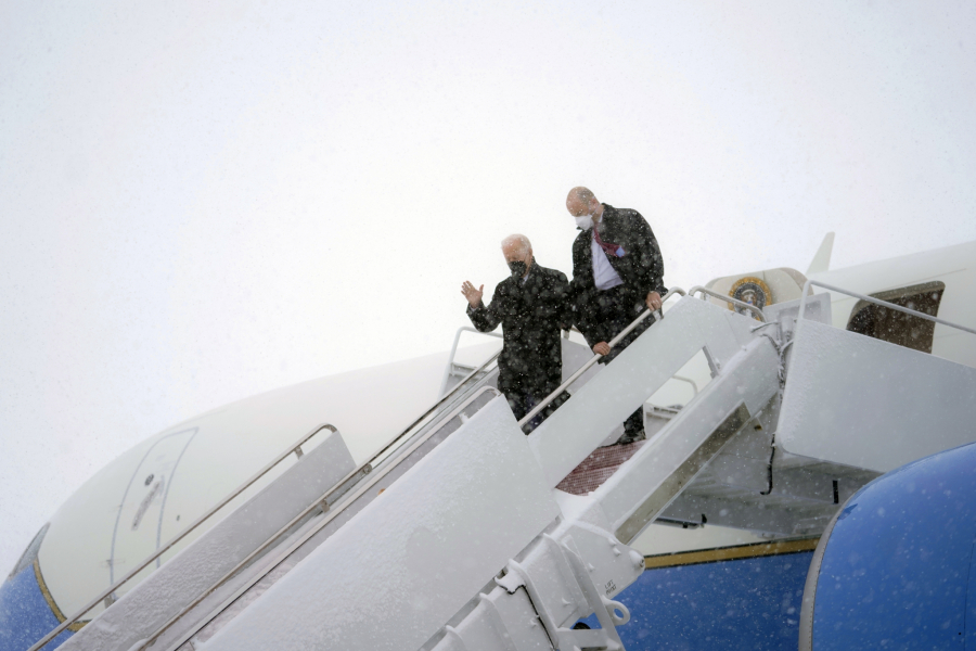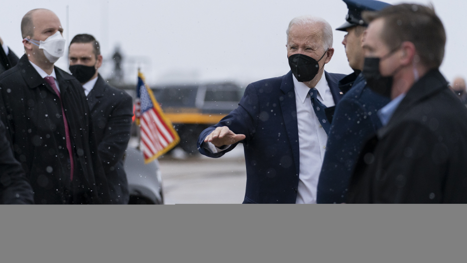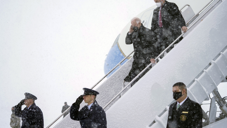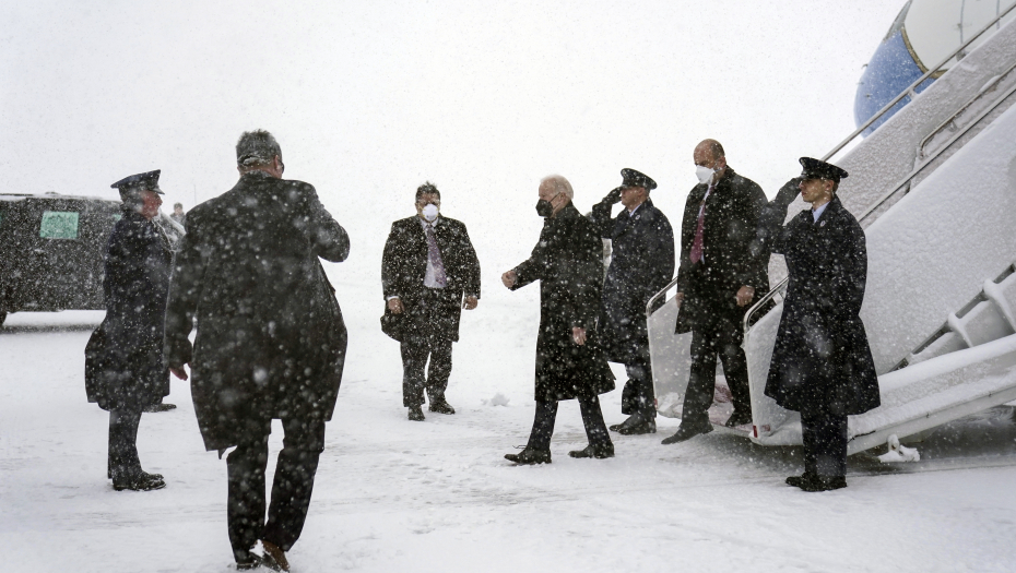 Kamion je gurao stepenice uz pomoć radnika, dok su se probijali kroz veliki sneg, a Bajden je morao da čeka 30 minuta.