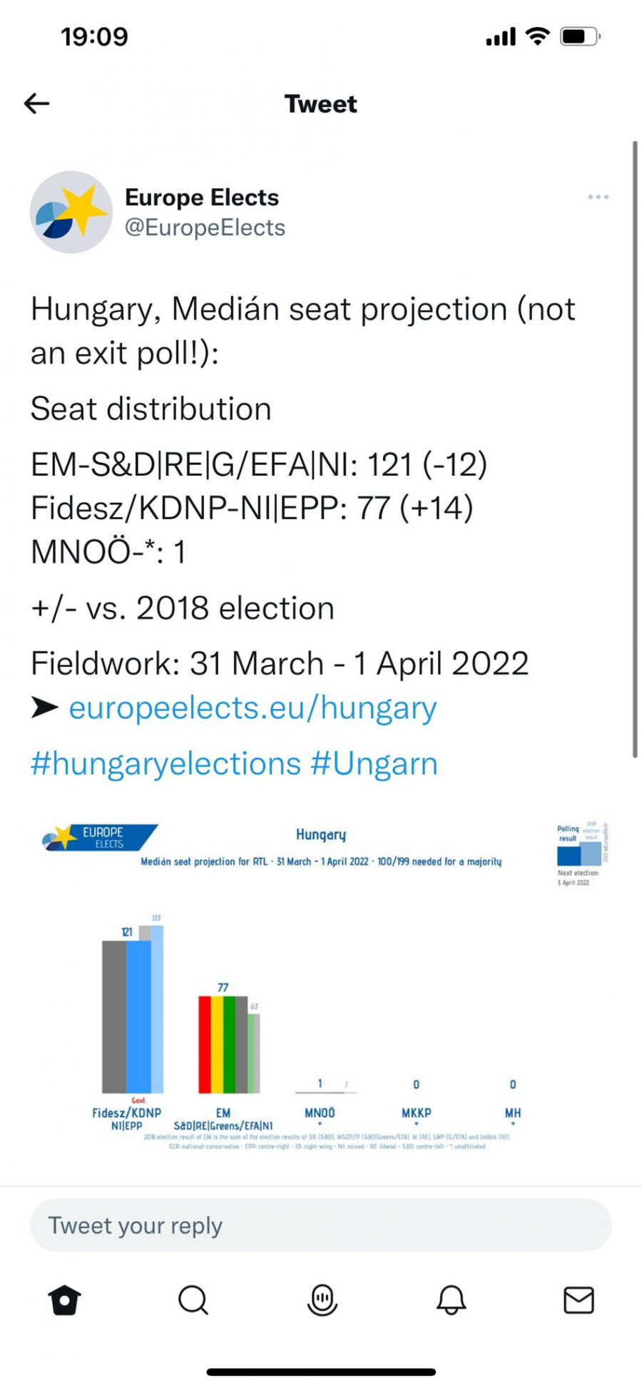 Biračka mesta širom Mađarske zatvorena su u 19:00 po srednjeevropskom vremenu, ali prema mađarskoj novinskoj agenciji, ako je neko u to vreme već čekao u redu da glasa, oni su i dalje mogli da glasaju.