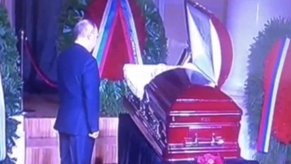 Putin je na oproštaju ceremoniju, koja se održava u Domu sindikata u centru Moskve, došao sa buketom crvenih ruža.