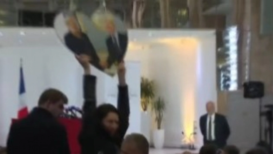 Obezbeđenje je ženu odmah oborilo na pod i izbacili su je iz sale gde je Le Penova govorila o nizu aktuelnih tema.