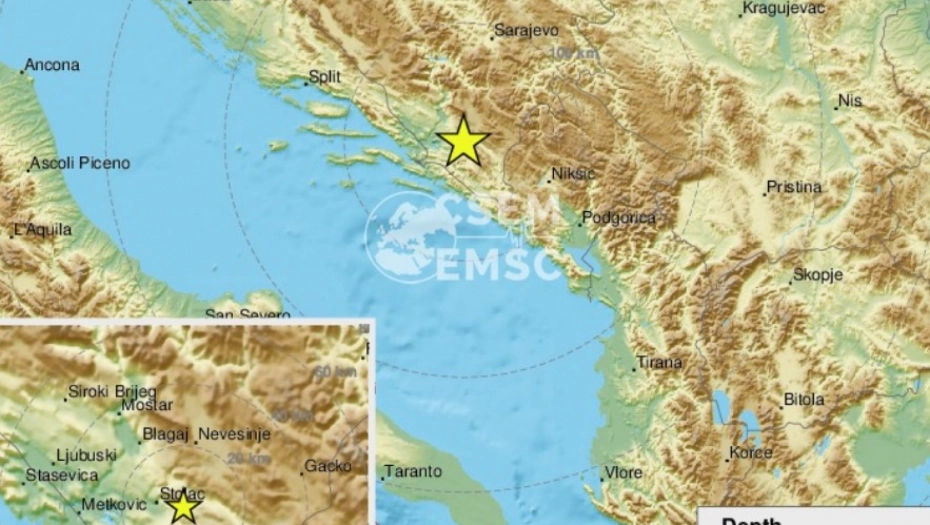 Prema prvim informacijama, epicentar se nalazi oko 30 kilometara jugoistočno od Mostara.