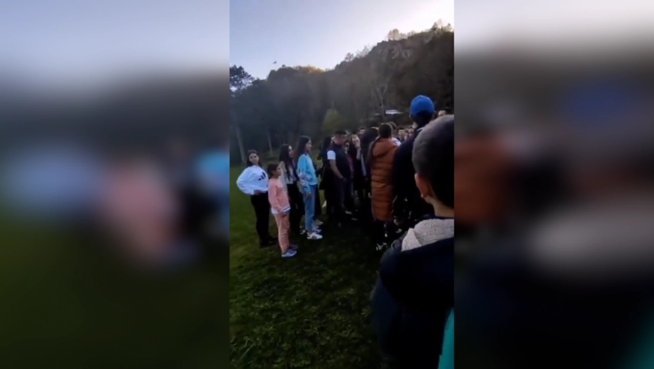 Na video snimku se vidi kako za sada nepoznata osoba govori deci da ne smeju da pevaju „Veseli se srpski rode“ na Cetinju.
