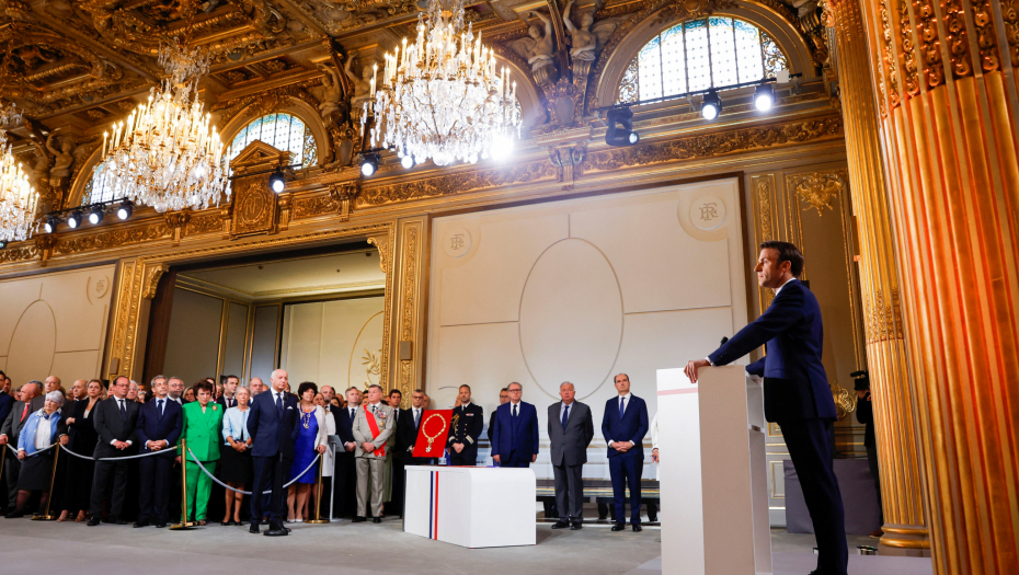 Na svečanosti u Jelisejskoj palati, na kojoj je bilo oko 450 zvanica, najpre je predsednik Upravnog saveta Loran Fabijis proglasio zvanične rezultate predsedničkih izbora, održanih 24. aprila, na kojima je Makron osvojio većinu glasova, navodi Mond.