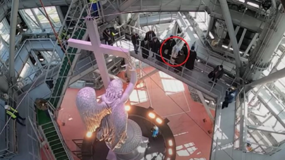 ČUDESAN PRIZOR OD KOG ZASTAJE DAH Ruski patrijarh osveštao anđela čuvara na vrhu najveće zgrade Evrope! Jedan detalj posebno važan (VIDEO)