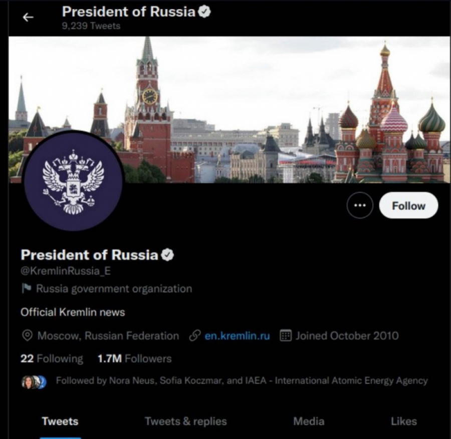 Pogledajte koga sve prati Vladimir Putin na svom zvaničnom Tviter profilu: