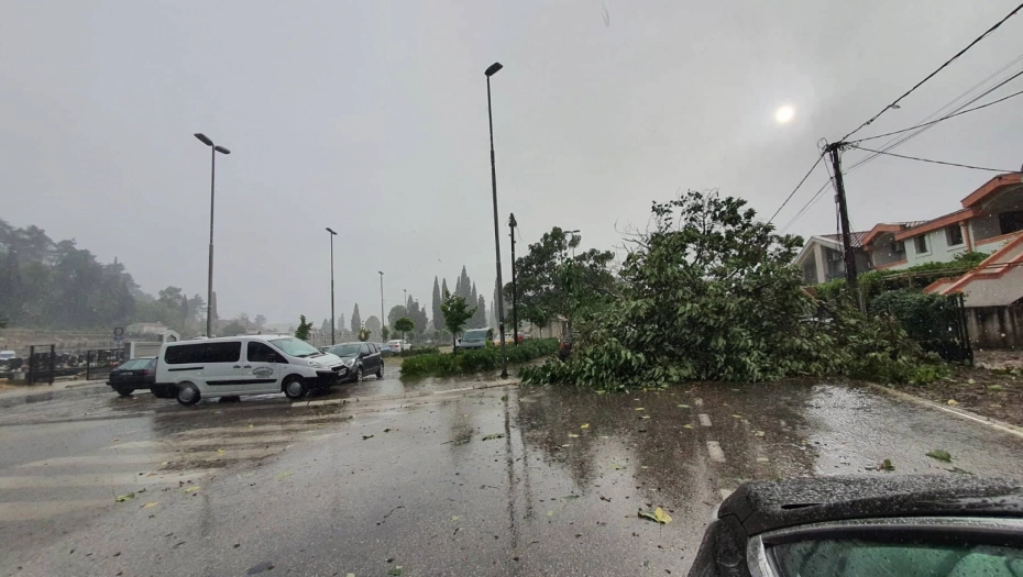Nevreme je izazvalo gužve u saobraćaju, a kod mosta Junion Bridž preko Morače, oborena su stabla drveća.