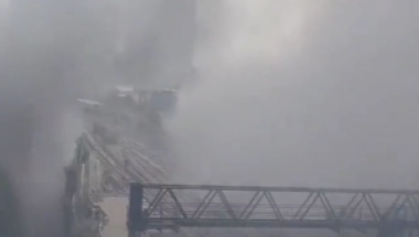 Na video snimku koje je vatrogasna brigada objavila na Tviteru vidi se veliki oblak dima koji izlazi ispod železničkog luka, za koji je vatrogasna brigada rekla da sadrži više vozila i da je bio "potpuno zapaljen".