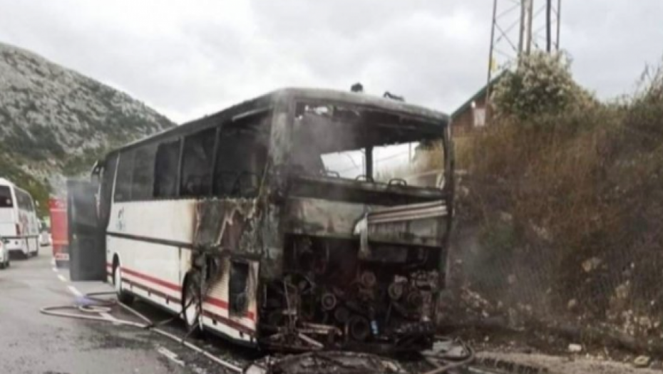 ZAPALIO SE U POKRETU Prve slike ugljenisanog autobusa koji je izgoreo na putu Budva-Cetinje (FOTO)