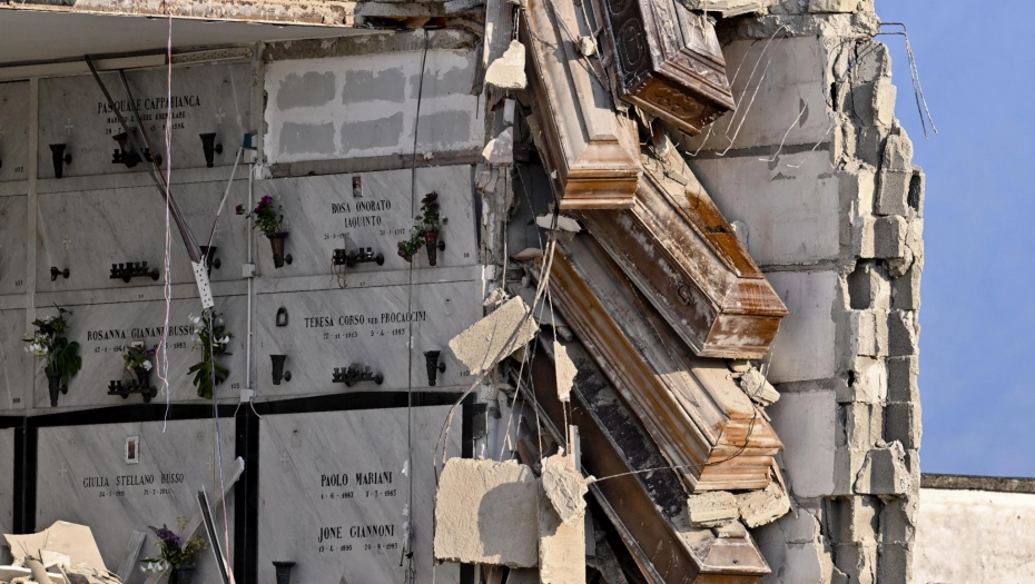 Najmanje desetak kovčega ostalo je da visi u vazduhu nakon što se deo mermerne zgrade srušio na najstarijem groblju u Napulju. Vlasti su stoga ograničile kretanje po groblju Pođoreale i započele istragu.